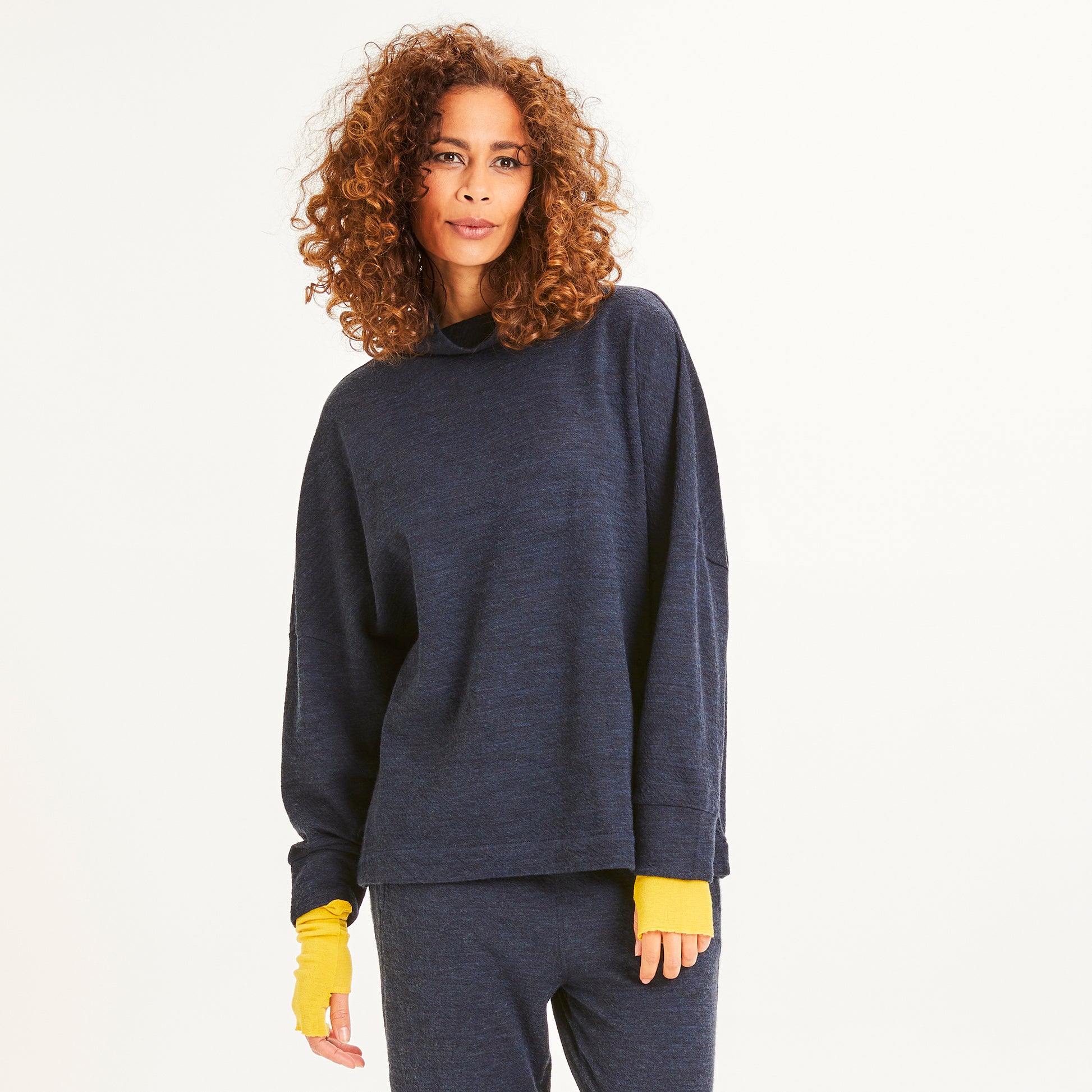 Material: 55% merinoull / 45% bomull. Ull utvändigt och bomull invändigt (double-face). Oeko-Tex-certified och mulesing-fri merinoull.