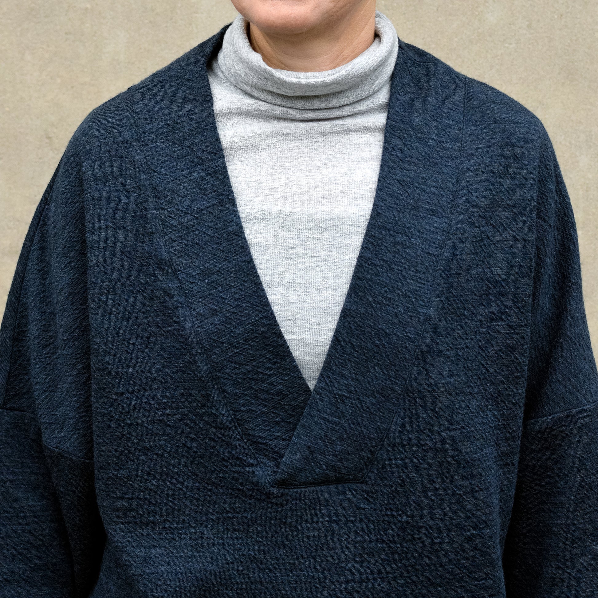 V-ringad ulltröja med bomull invändigt - Midnight Blue