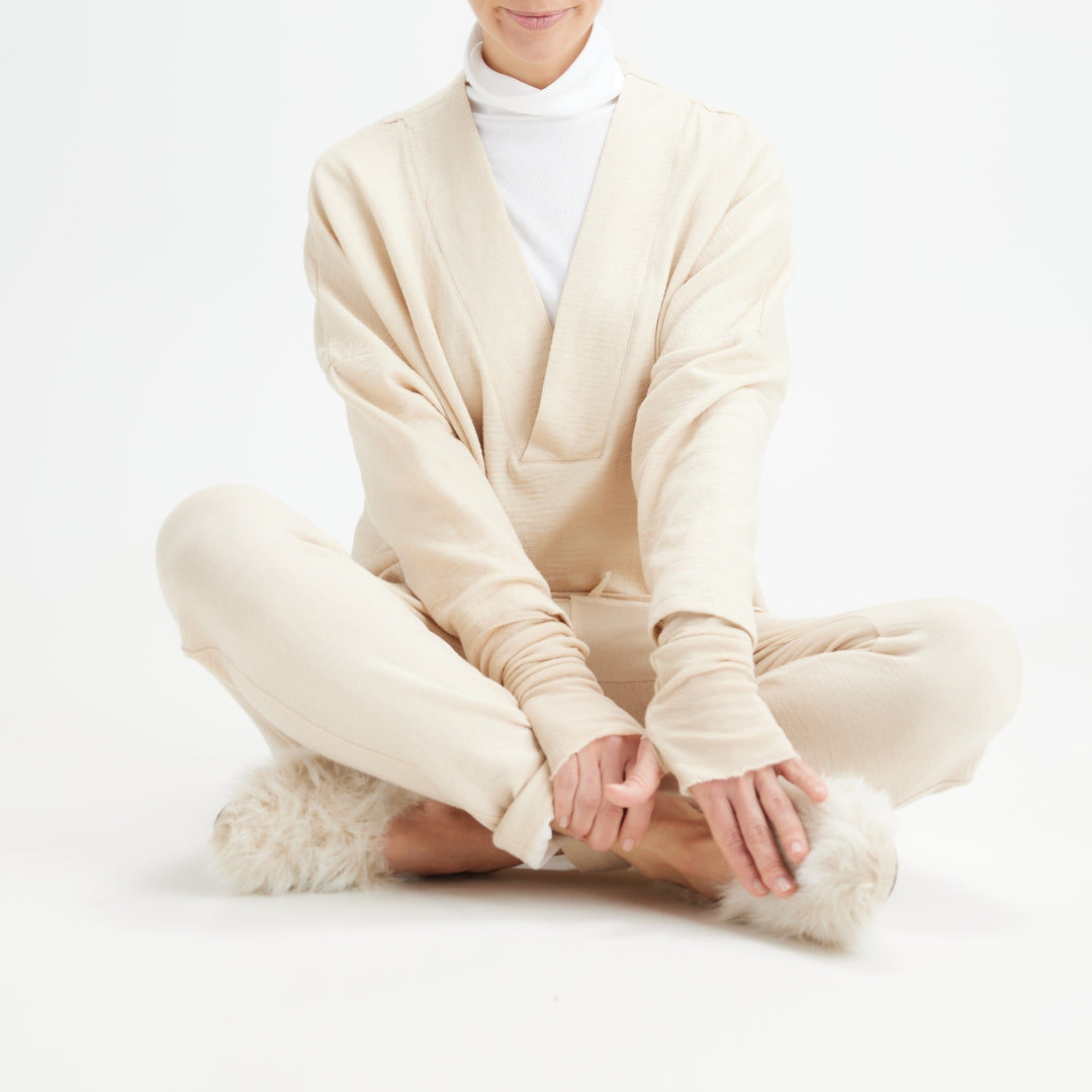 Kläder i Cotton/Wool är något utöver det vanliga. Tunn merinoull på utsidan håller dig varm medan mjuk bomull på insidan ger högsta möjliga komfort och gör plagget otroligt skönt att bära direkt mot kroppen.