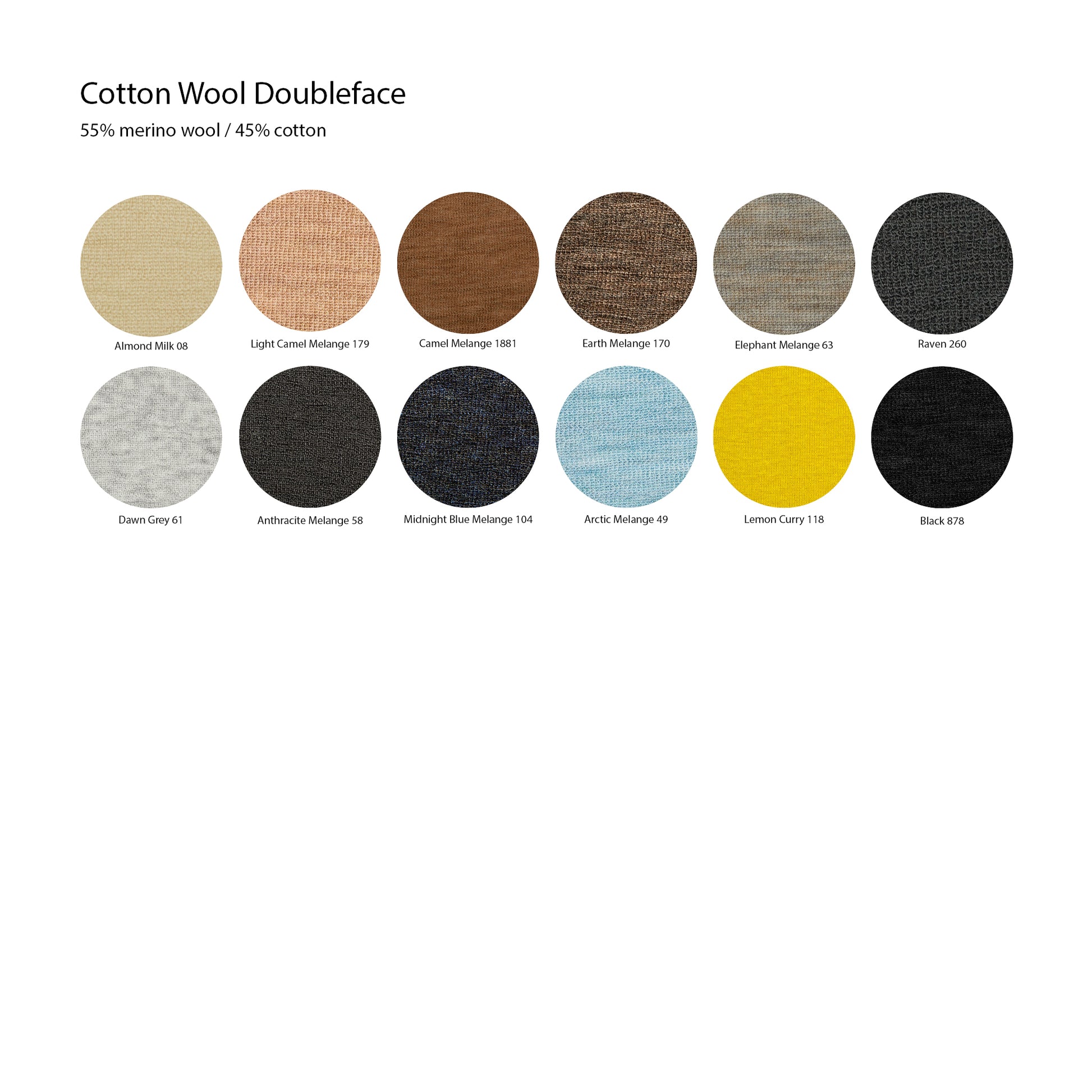 Material: 55% merinoull / 45% bomull. Ull utvändigt och bomull invändigt (double-face). Oeko-Tex-certified och mulesing-fri merinoull.